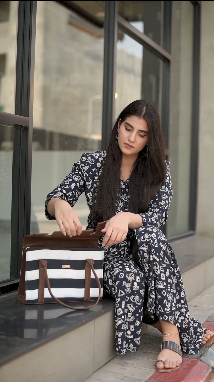 Our latest Darwin bag is crafted from smooth jute strips print and vintage-inspired synthetic leather, this bold black-and-white piece can slot seamlessly into any ensemble — from pared-back to preppy to purposefully wild. Designed with a front flap, gilded turn-lock closure and a detachable strap that lets you go hands-free when the occasion calls for it, our darwin bag offers just the right amount of fun and functional vibes. Carry it as a crossbody bag or sling it over your shoulder, the choice is yours. Try pairing it with a western dress and strappy sandals.